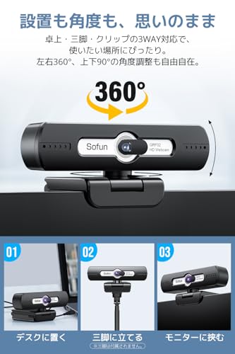 左右360°上下90°の角度調整と三脚対応により、配置や環境に合わせて最適な映像を演出できるため、パソコン周辺環境に悩む方にもおすすめできます。
