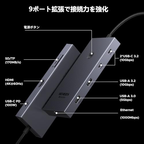 UGREEN Revodok Pro 9-in-1 USB-Cハブは、多様なポートと安定した通信・高速データ転送・高出力充電を一体化し、現代のUSB-Cデバイスの拡張に最適です。