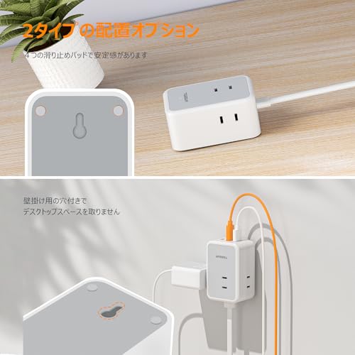 壁掛けやデスク設置に対応したこの電源タップは、忙しい日常の中で複数機器の電源管理をシンプルかつ安全に行いたい方に最適です。
