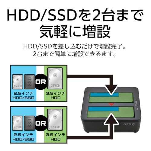 • 2台の2.5/3.5インチSATA HDDやSSDを簡単に着脱可能