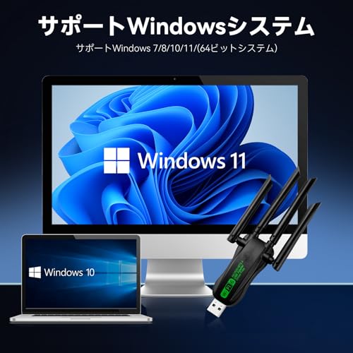 WiFi無線LAN子機AC1500は、Windows 11、10、8.1、8、7、さらにはXPまで幅広いWindows OSに対応している点が大きな魅力です。